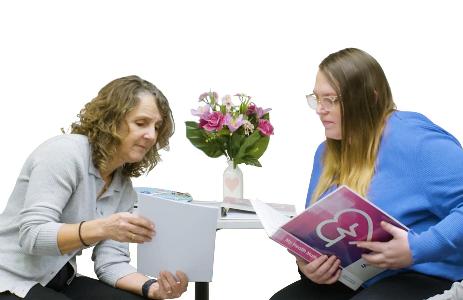 Claire: "Okay, so we have a plan. I'll write to your doctor, and suggest that you might like to see us in two years time. And I'll give you this Easy Read report to take home. But in the meantime, if anything changes with your health or if you have any questions or want to ask me anything, please contact me, okay?"