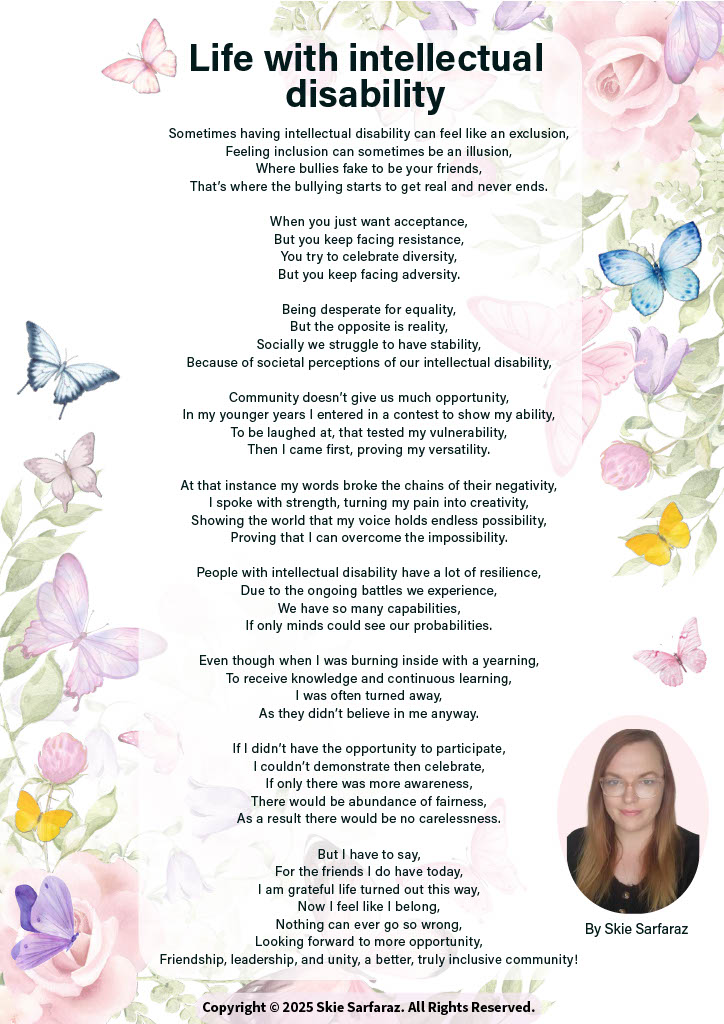 Mrs. Skie Sarfaraz is a distinguished Community Disability Team Leader and Lived Experience Researcher with intellectual disability who brings unique expertise in co-design, self-advocacy, and knowledge translation. Her dual perspective as both a researcher and community leader, alongside her First Nations identity, enriches her approach to creating culturally responsive, person-centred support.